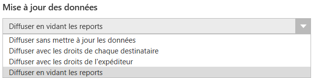 Il est important d’être particulièrement vigilant lorsque vous utilisez cette option. Cela implique que l’utilisateur destinataire recevra potentiellement des données qui sortent du périmètre défini dans MyReport Administrator.