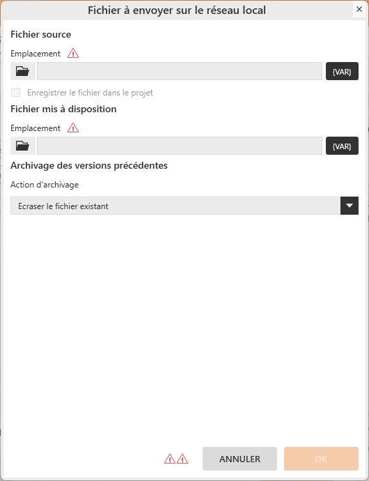L'option « Enregistrer le fichier dans le projet » permet de créer une copie du fichier au sein du Projet (MySystem).
