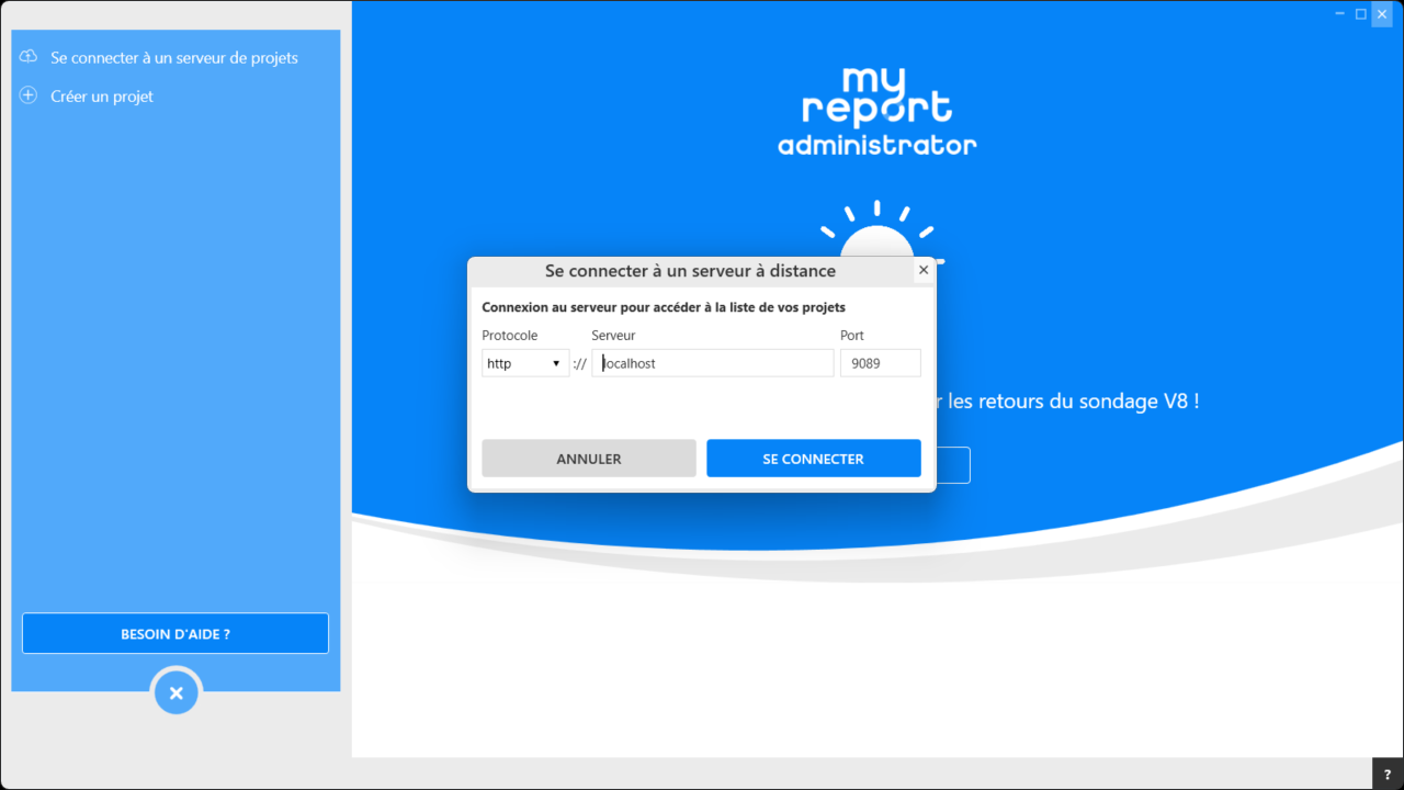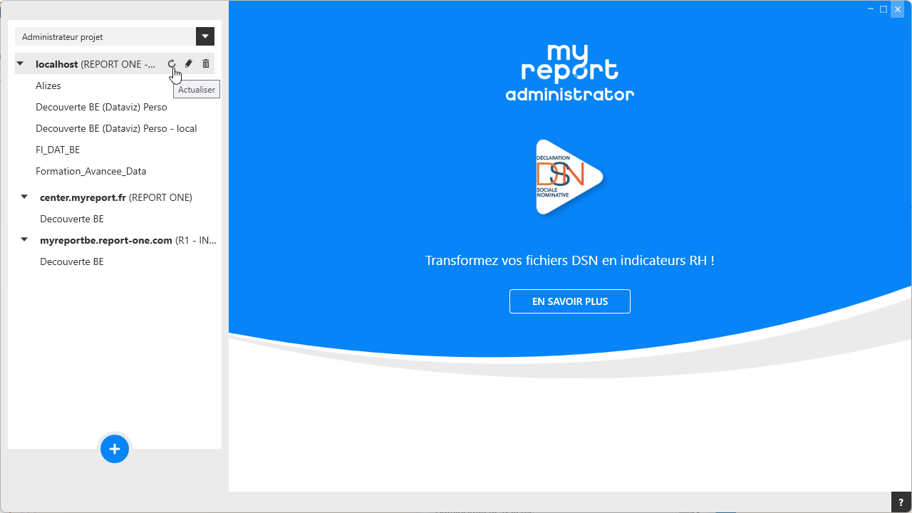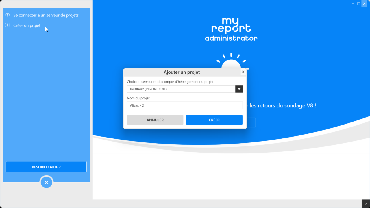 S'il n'y a pas de projet déclaré via MyReport Server, créez un nouveau projet en cliquant sur l’icône d'ajout de projet