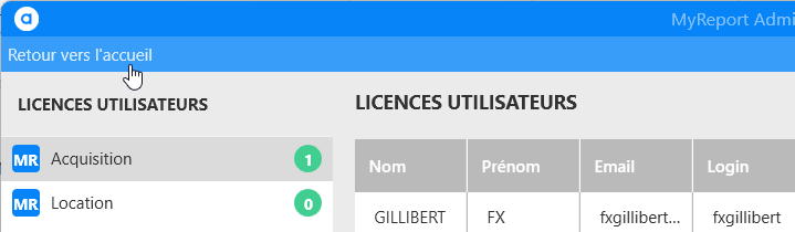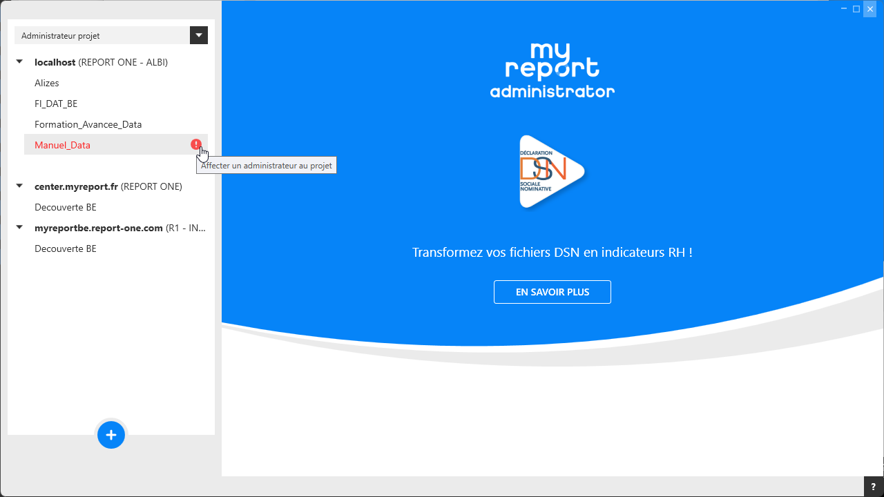 Le ou les administrateurs d'un projet sont forcément des utilisateurs ayant une licence Manager MyReport.
