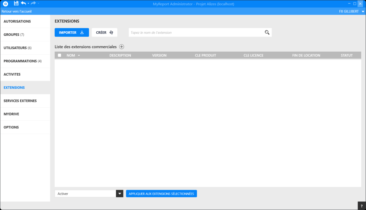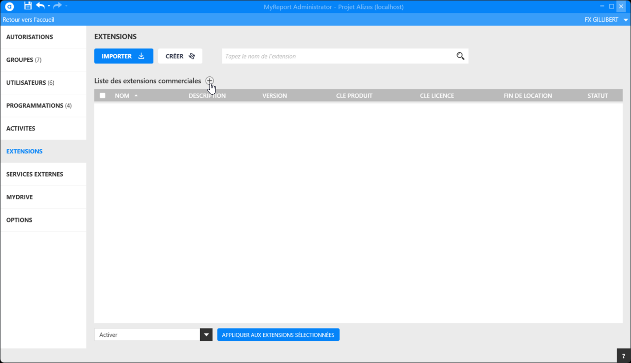 Toutes les fonctionnalités liées aux extensions (anciennement connecteurs) sont maintenant présentes au sein de MyReport Administrator.