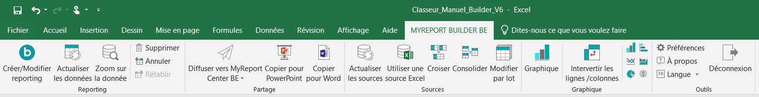 MyReport Builder Business Evolution est installé dans la barre d'outils d'Excel à l'exécution du setup d'installation.