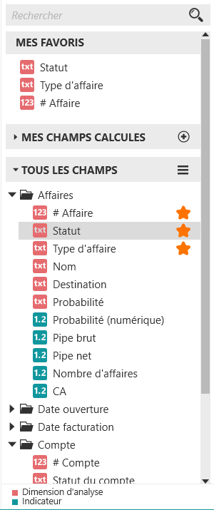 En bas de cette fenêtre, la légende informe sur la qualification du champ (indicateur/dimension d’analyse).