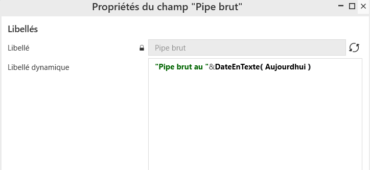 Dans les Propriétés d'un champ, il est possible de créer un Libellé dynamique qui s'affichera prioritairement au simple "Libellé" court.