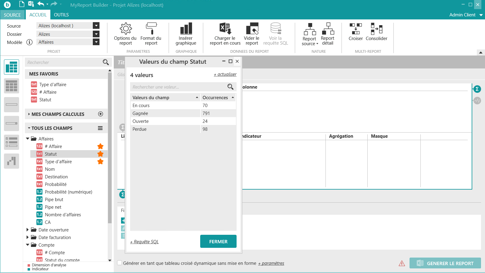 • Un double-clic sur un champ de type « Indicateur » (vert) pour le placer en Indicateur.
