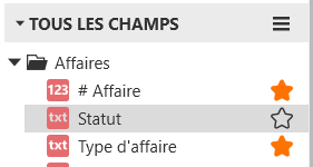 Dans la liste des champs, il est possible d'ajouter un champ à sa liste de « favoris » :