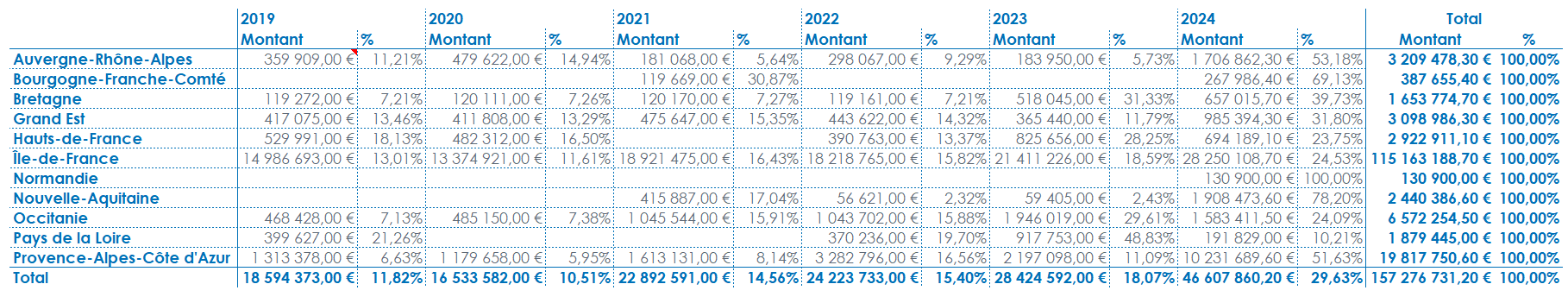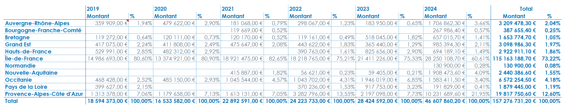 L’affichage des valeurs en pourcentage permet d’afficher le poids que représente une cellule par rapport à un sous total ou un total.