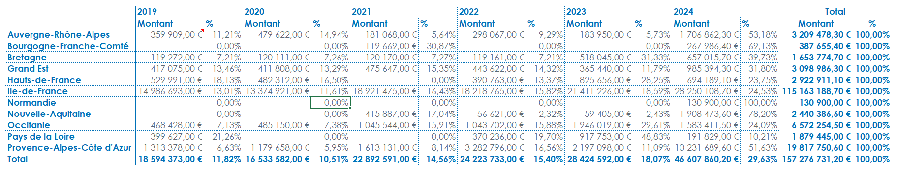 A partir du report précédent, vous pouvez constater que certains montants et pourcentages n'ont pas de valeurs. Certaines cellules sont donc vides.