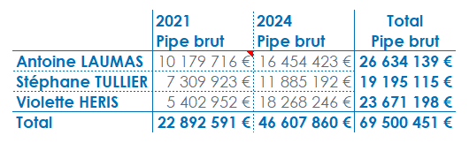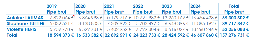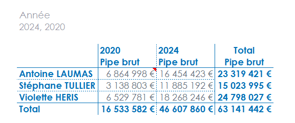 L’objectif est de créer un tableau affichant le Pipe brut d'une ou plusieurs années.