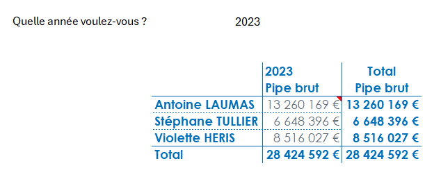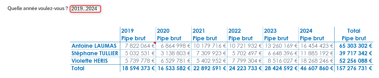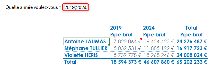 - renseigner plusieurs valeurs en les séparant par un point virgule. ex : Année = 2019;2024 pour avoir plusieurs années
