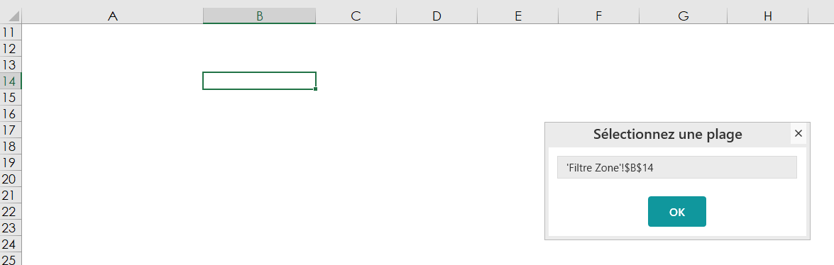 Cette zone sera alors disponible dans ce classeur Excel pour définir vos filtres zone dans MyReport Builder.