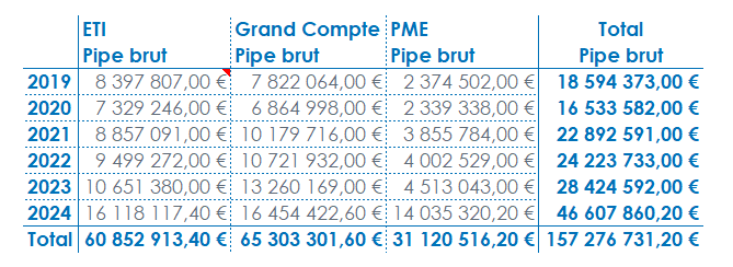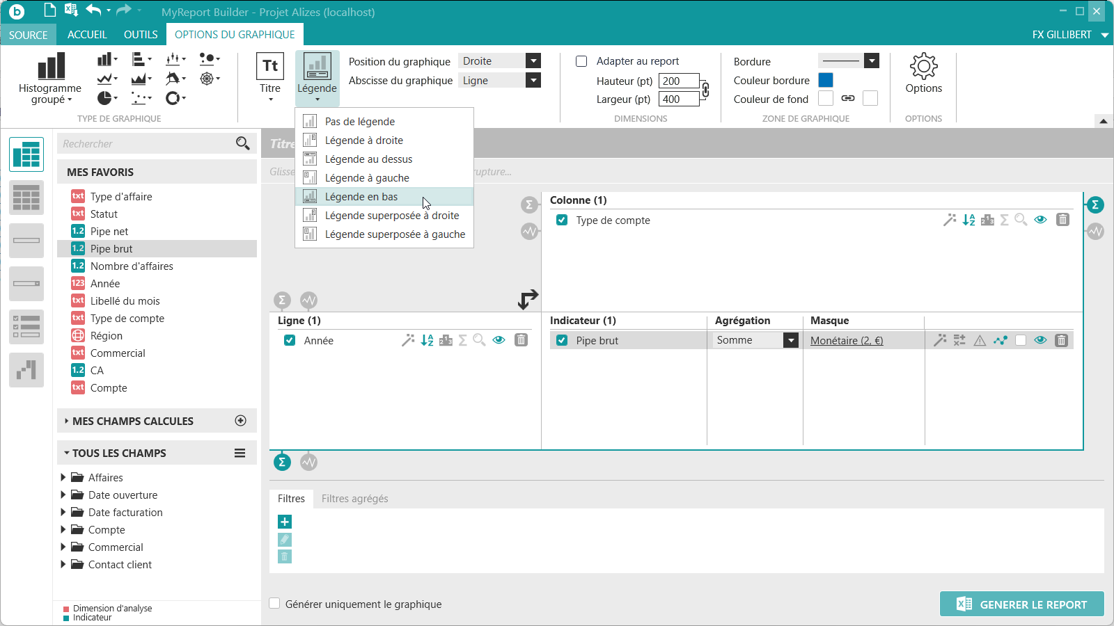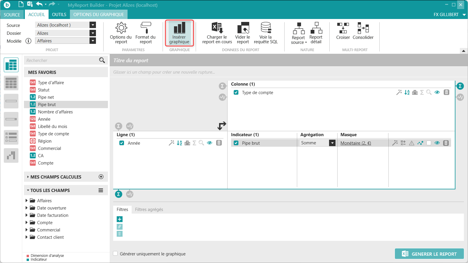 L’objectif est de créer un report présentant le « Pipe brut » par « Année » et par « Type de compte », avec son graphique associé.