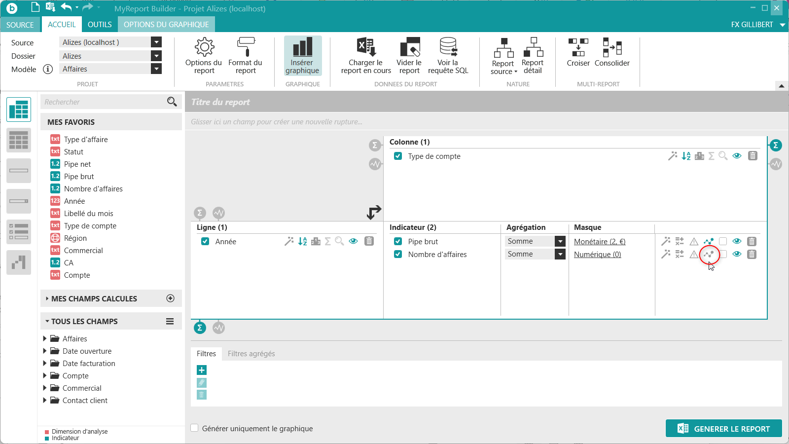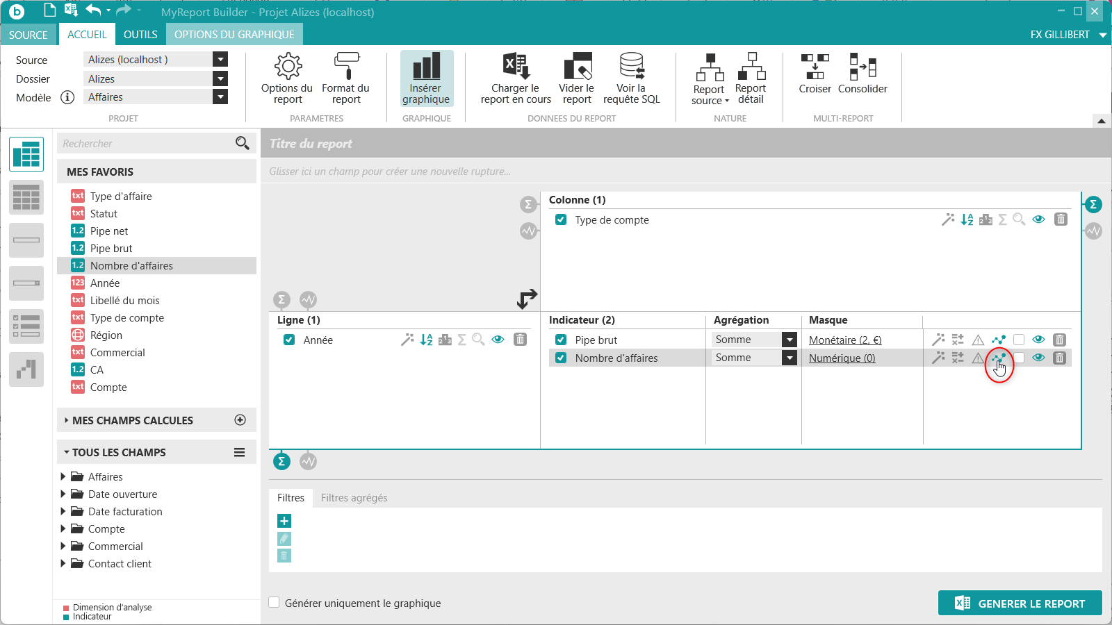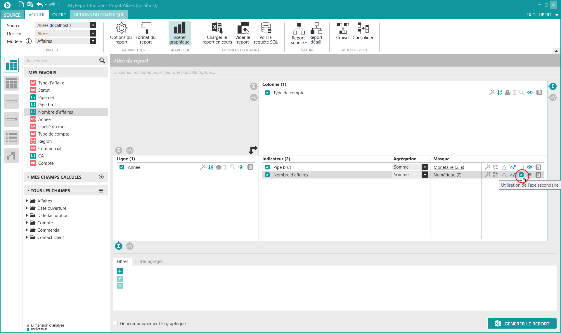 Revenez dans MyReport Builder et, finalement, cochez la case Utilisation de l'axe secondaire pour l'indicateur « Nombre d'affaires » :