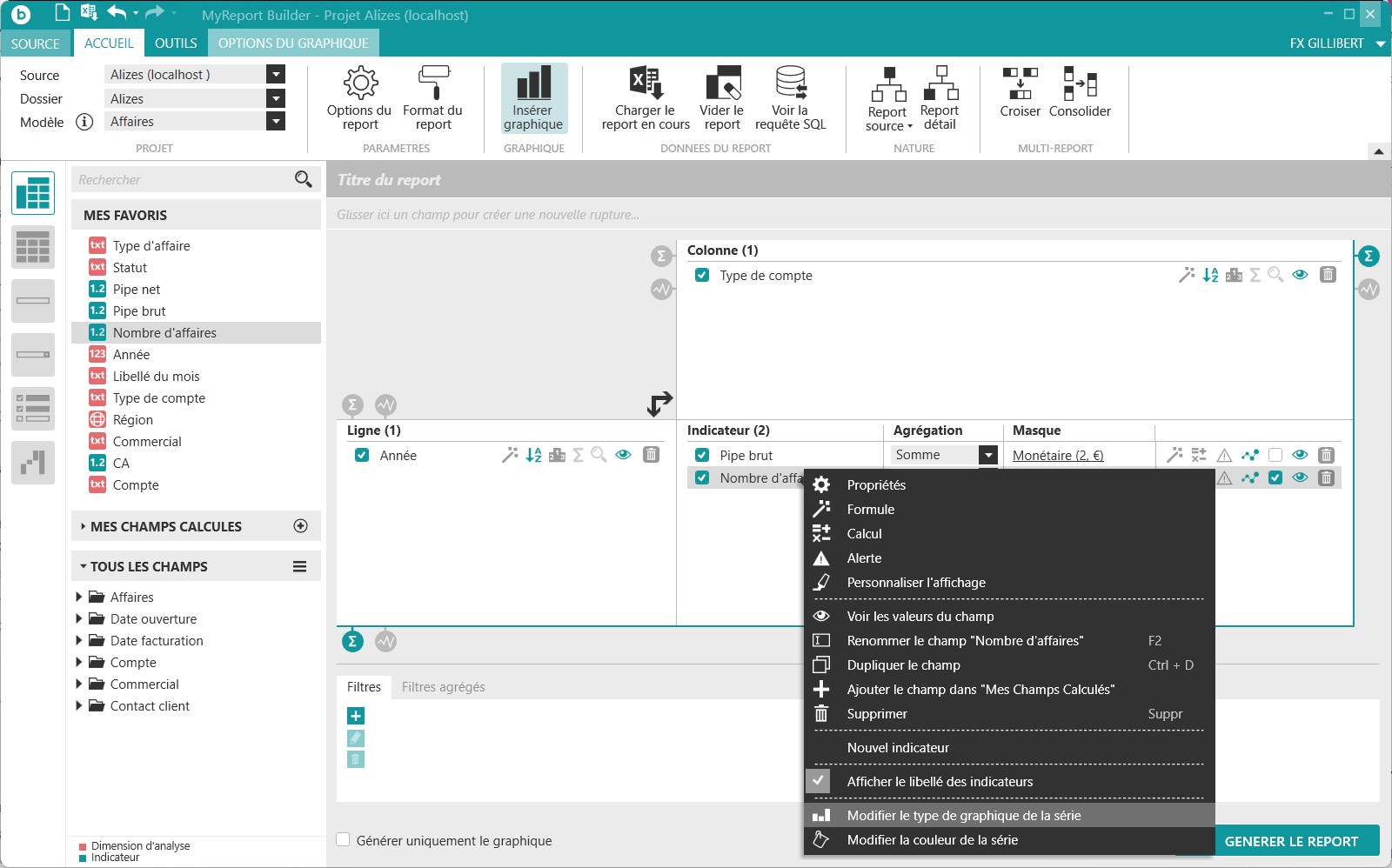 Dans MyReport Builder, effectuez un clic droit sur l'indicateur « Nombre d'affaires », puis sélectionnez « Modifier le type de graphique de la série » :