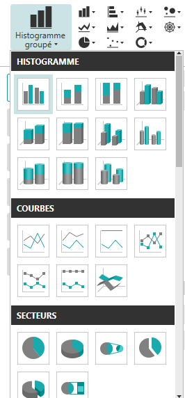 Dans le sous menu TYPE DE GRAPHIQUE, des listes déroulantes vous permettent de sélectionner le type de graphique de votre choix.