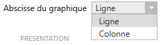 Vous pouvez déterminer l’abscisse du graphique à partir de ce paramètre. Vous sélectionnez les lignes ou les colonnes du report comme abscisse du graphique. Par défaut, les lignes du report représentent l’abscisse du graphique.