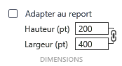 Vous pouvez modifier la taille du graphique à partir des paramètres de dimension. Lorsque vous modifiez la hauteur ou la largeur, alors le second paramètre s’adapte automatiquement pour conserver les proportions. Afin de modifier manuellement les 2 paramètres, vous devez cliquer sur l’icône