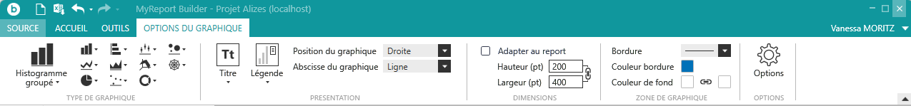 A partir du menu OPTIONS DU GRAPHIQUE de MyReport Builder, vous pouvez :