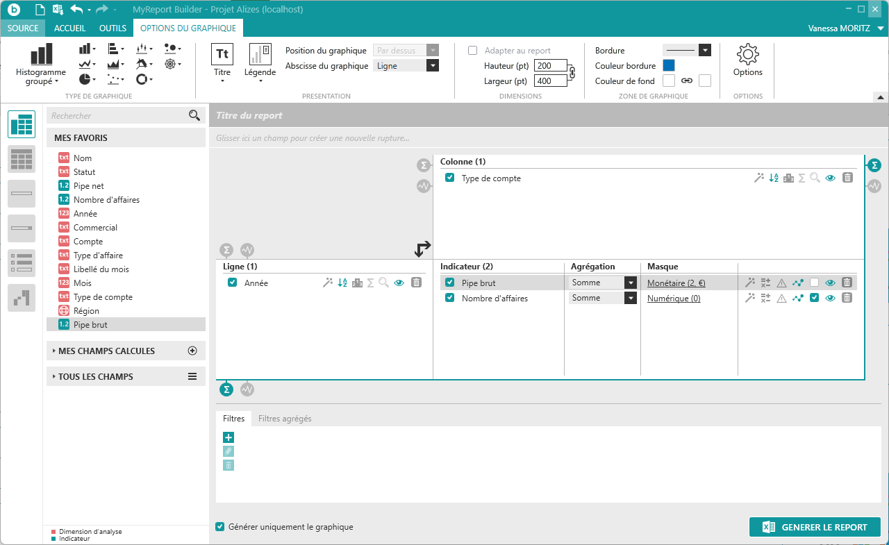 Il est possible de ne générer que le graphique (sans afficher les résultats du report) en cochant la case en bas du report (en dessous des filtres) « Générer uniquement le graphique »: