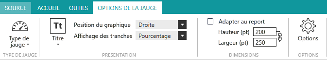 Options d'un report Jauge
