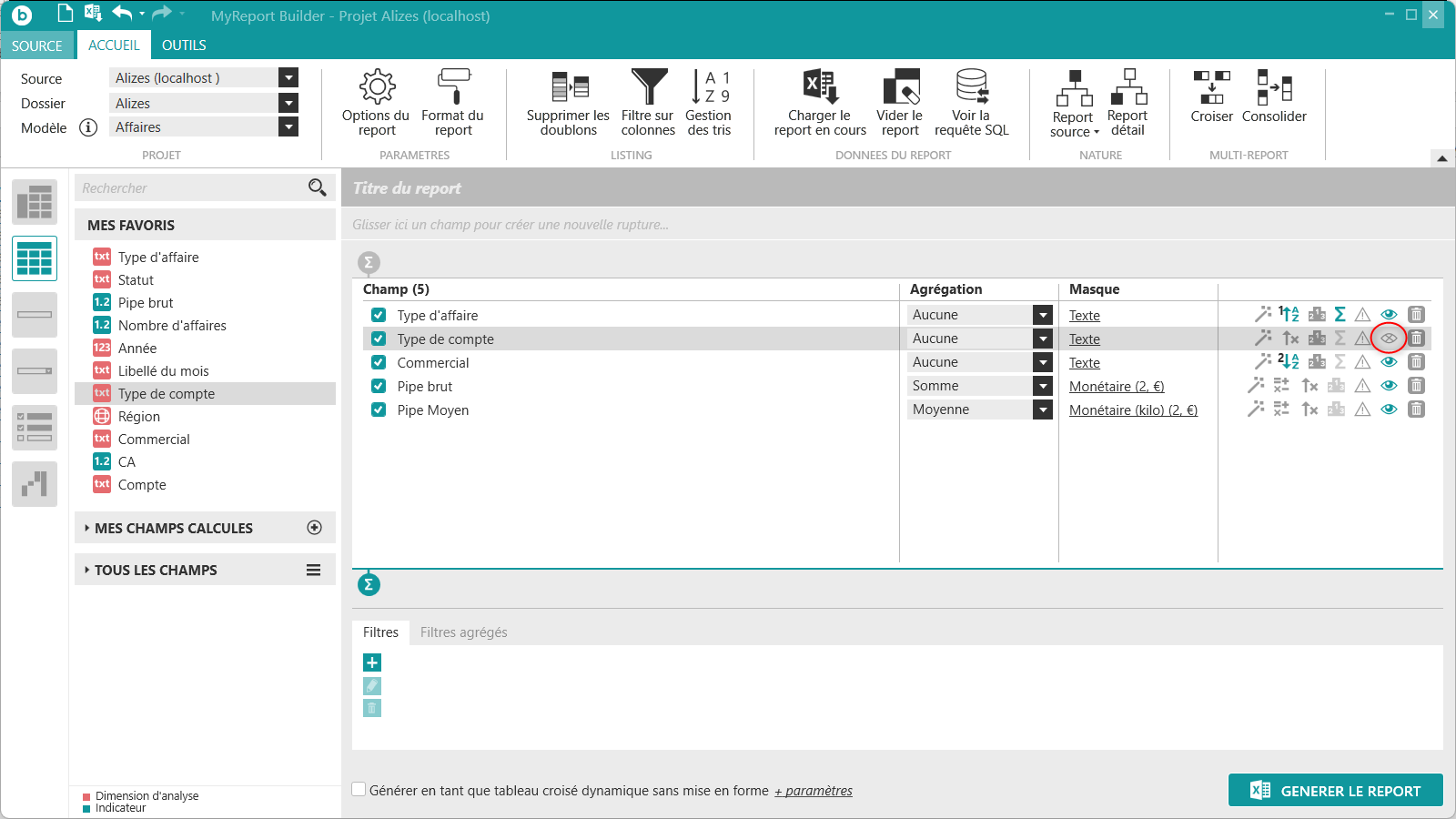 Les listings peuvent être agrégés ou non : dans le second cas, chaque ligne de l’entrepôt de données correspondra à une ligne dans le report.