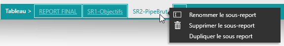 Pour dupliquer un sous-report, effectuez un clic-droit sur son nom dans le menu situé en bas et choisissez « Dupliquer »
