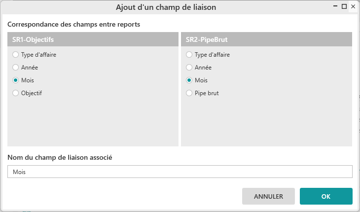 Les champs de liaisons sont créés automatiquement par MyReport Builder BE. Celui-ci regroupe automatiquement les champs des sous-reports ayant des noms identiques.
