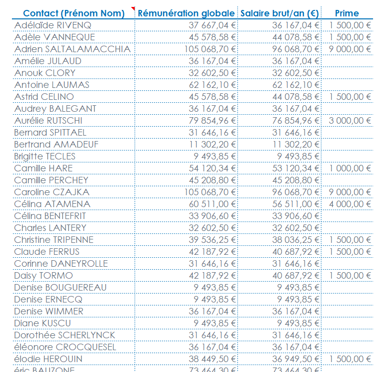 (Facultatif : Juste pour vérifier le fait que le champ « Rémunération globale » est bien la consolidation du salaire et de la prime obtenue, vous pouvez ajouter également ces 2 champs.) Moi, j'aime bien vérifier les données... ;-) et je suis sûr que vous aussi...