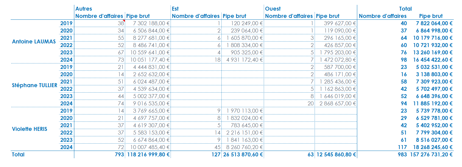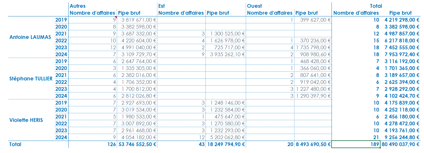 - Le « Nombre d'affaires » et le « Pipe brut » en indicateur.