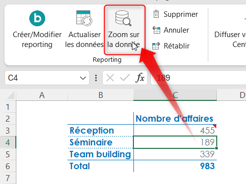 Depuis le report Maître, sélectionnez une (ou plusieurs) cellule(s) et cliquez sur le bouton « Zoom sur la donnée »
