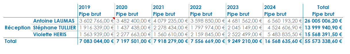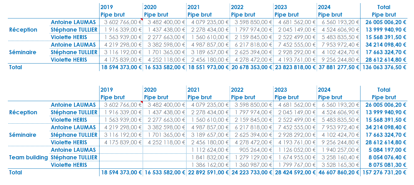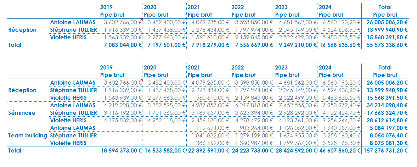 Ce report va afficher plus de lignes (les Réceptions et les Séminaires), il va écraser les lignes du report situé en-dessous !!!
