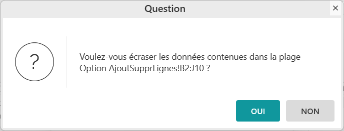 La fonction « Ajout/Suppression de lignes à la mise à jour (hors rupture) » peut être utilisée lorsque plusieurs tableaux de hauteurs variables sont positionnés les uns en dessous des autres.
