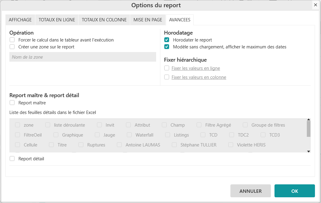 Dans l'onglet Avancées, activez l'option Horodater le report et Modèle sans chargement, afficher le maximum des dates (il s'agira alors de la dernière date de l'ETL).