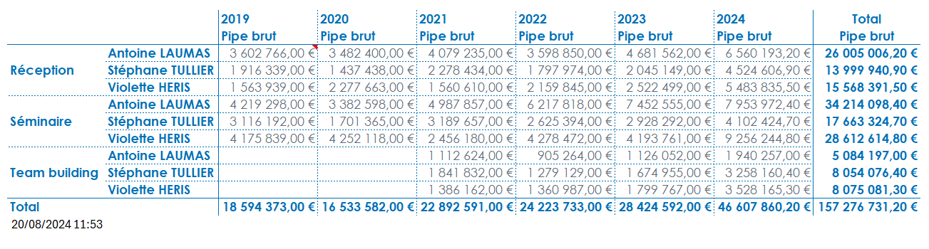 située tout en haut à gauche de MyReport Builder. Positionnez dans votre report les champs suivants du modèle Affaires :