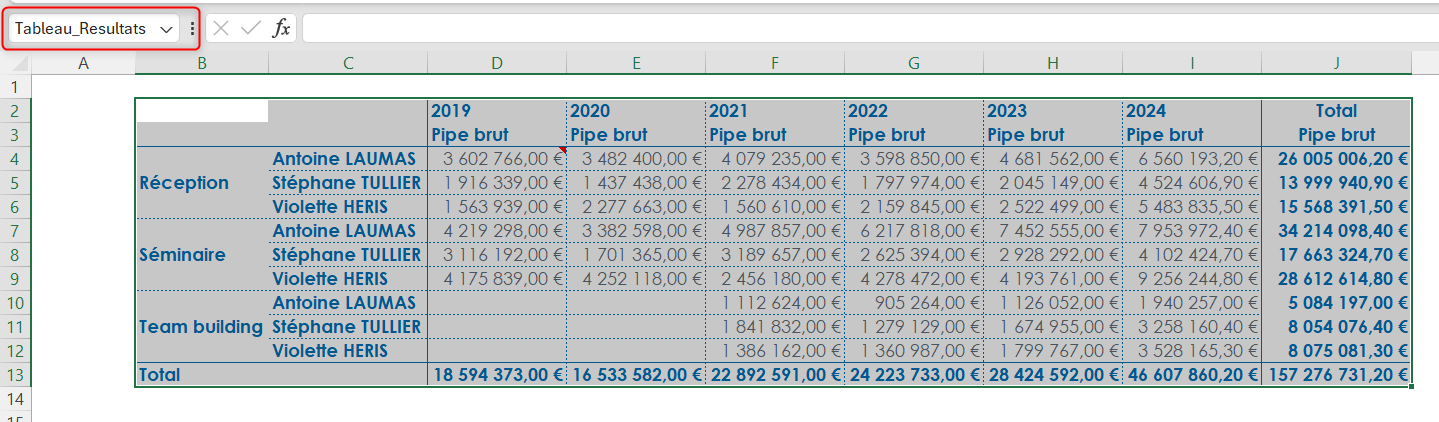 Pour rappel, l'ensemble des zones nommées d'un classeur sont enregistrées dans le classeur Excel dans le menu Formules, puis Gestionnaire de nom.