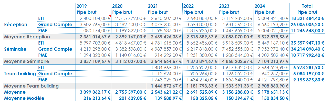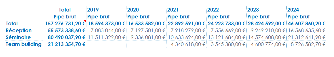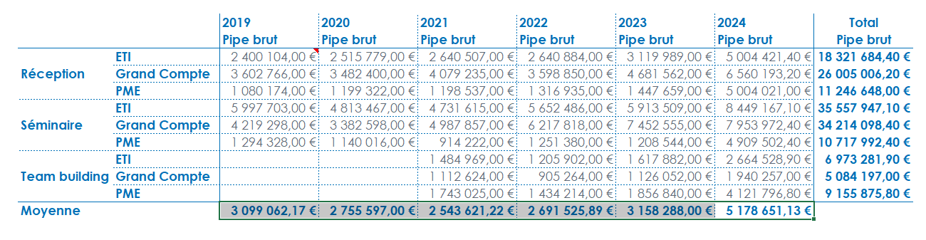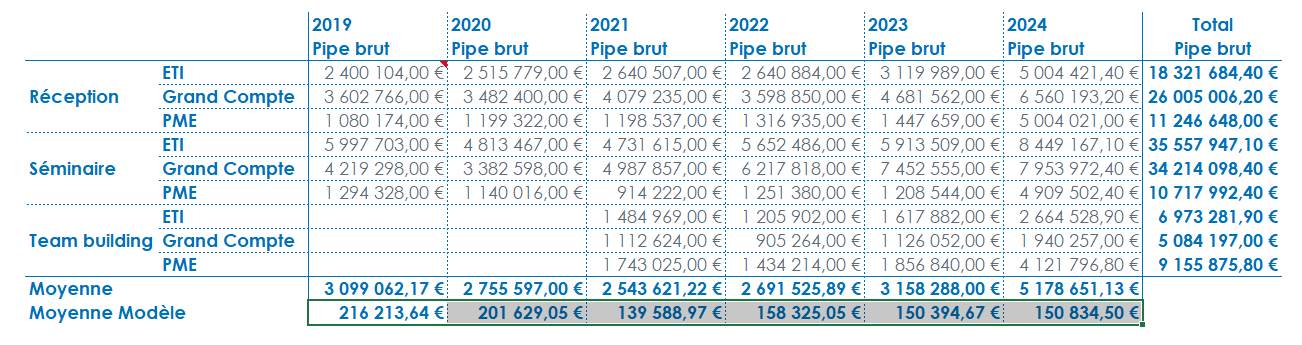 La valeur 216 213,64 € correspond à la moyenne des montants des lignes de vente de 2019.