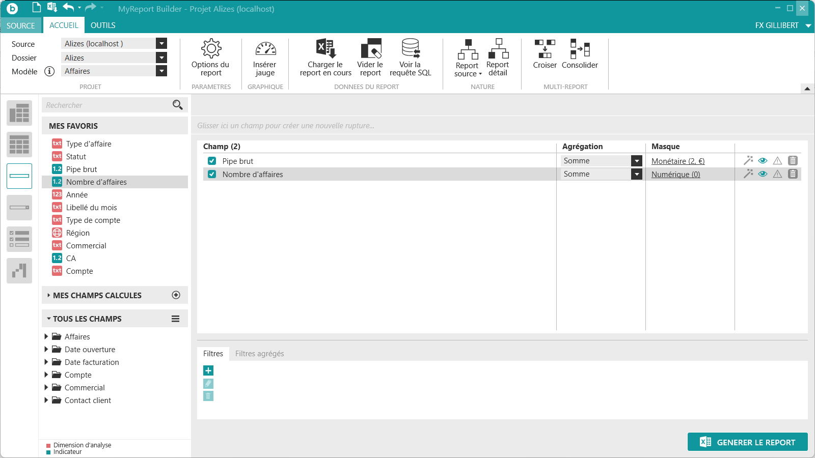 Dans MyReport Builder, cliquez sur l’icône « Nouveau report »