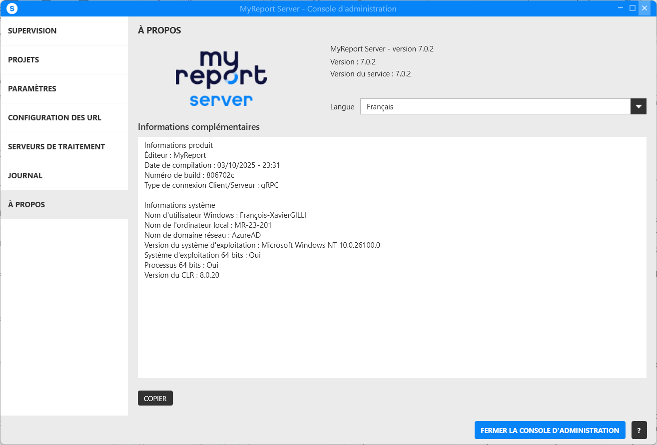 Il est possible de copier ces informations et de les coller dans un Ticket si notre service Support vous en fait la demande.