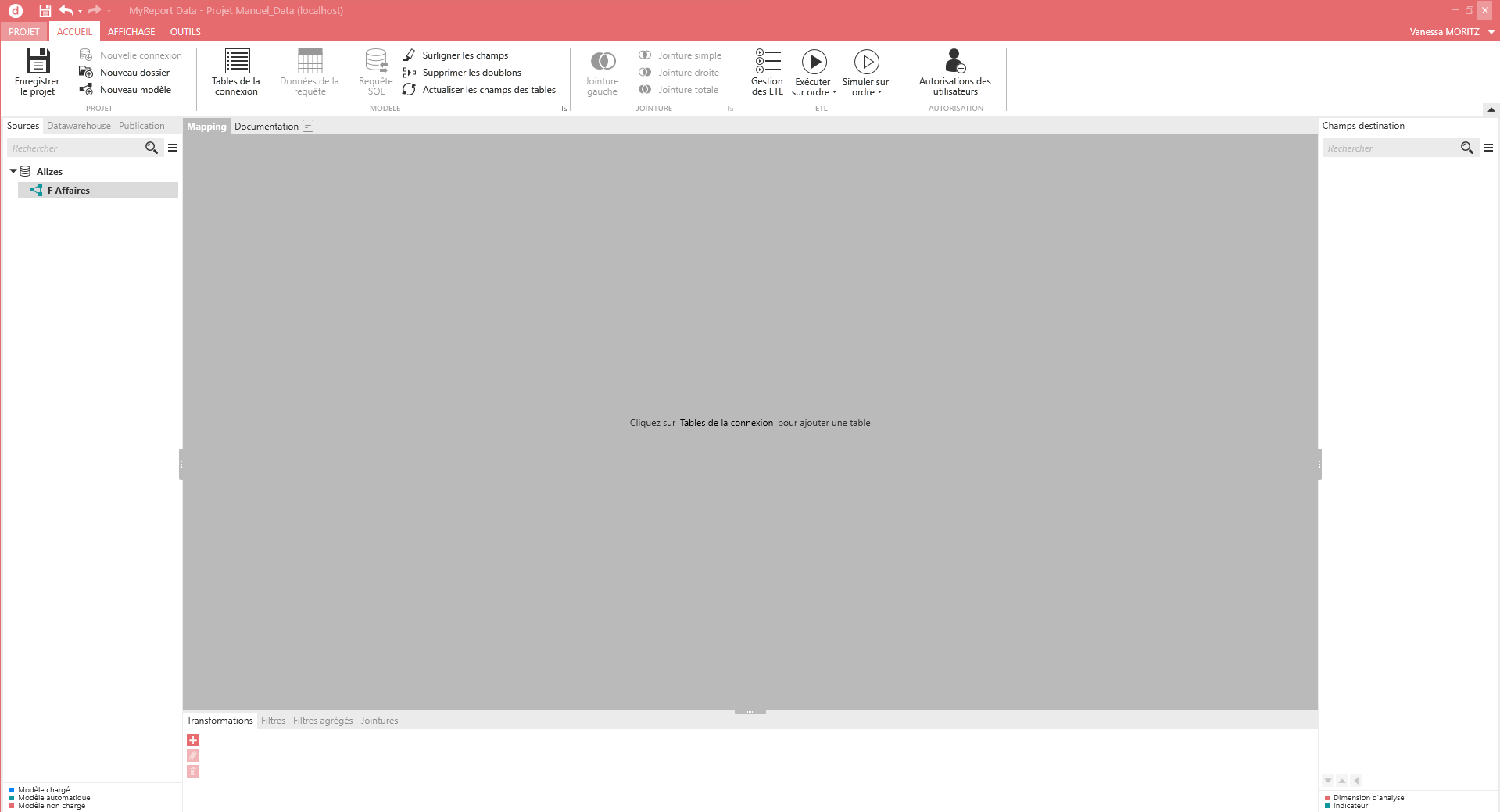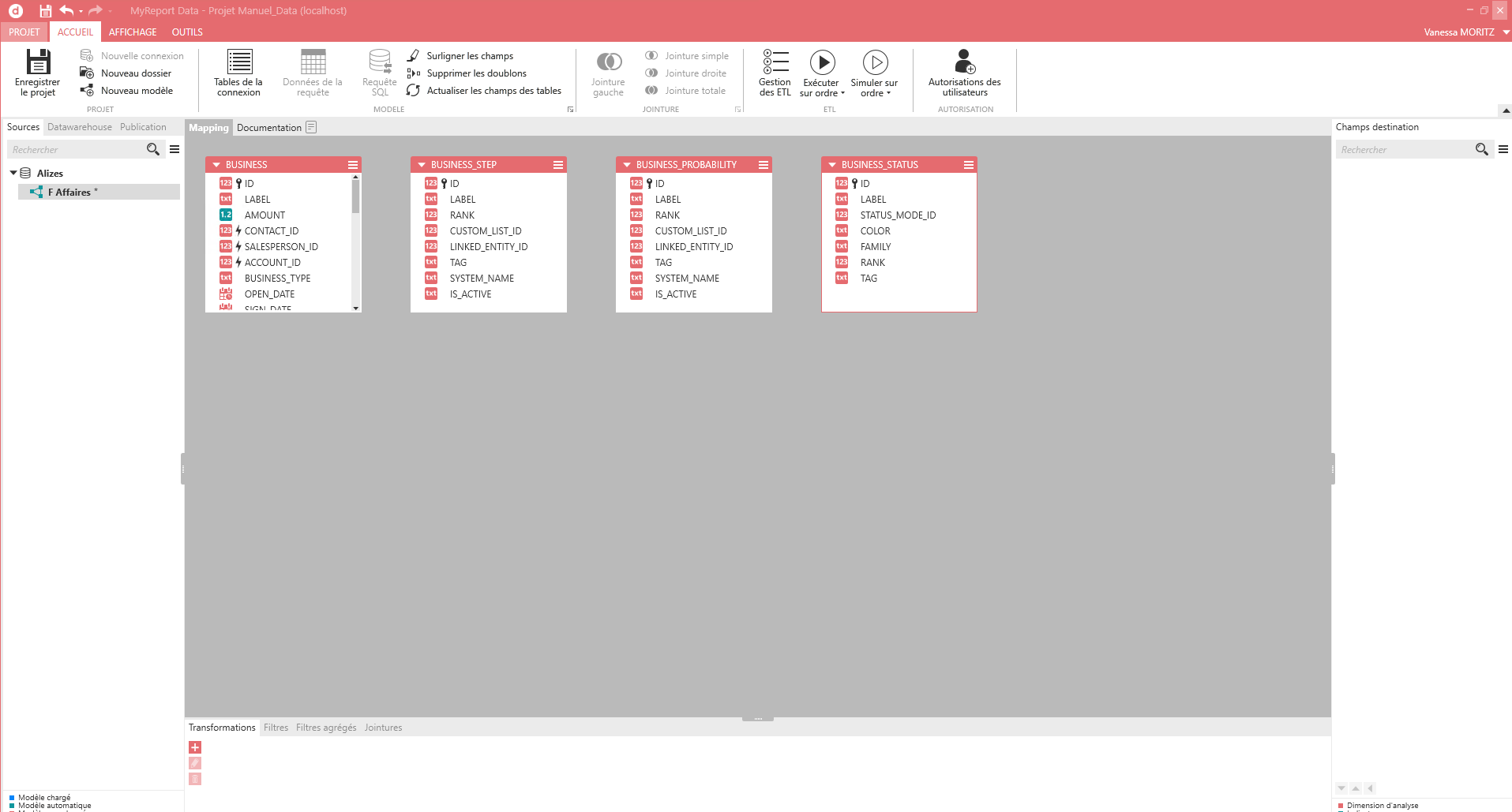 Vos quatre tables apparaissent alors dans la zone de mapping de MyReport Data.