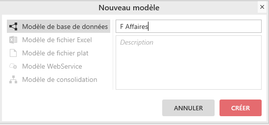 Nommez-le « F Affaires » pour représenter la table de faits de notre modèle puis cliquez sur le bouton « Créer ».
