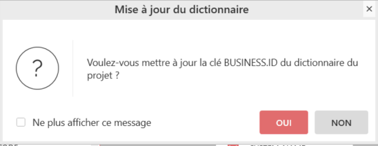 Pour mettre à jour le dictionnaire du projet, cliquez sur le bouton OUI.