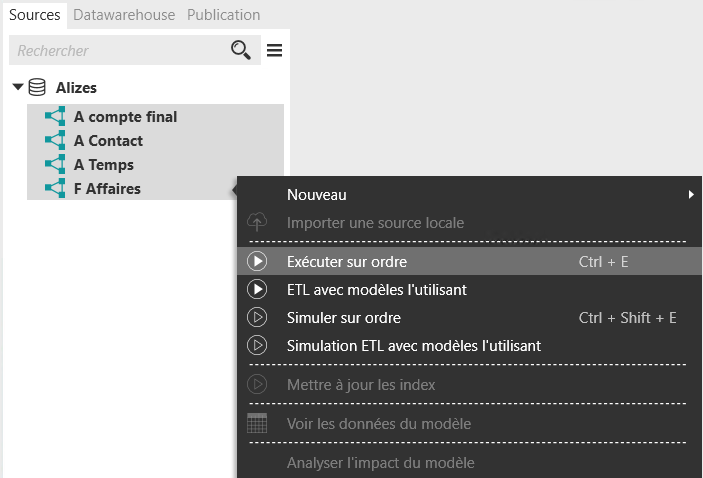 Un ETL sur ordre consiste à forcer la mise à jour des données de l’entrepôt. Il peut être lancé soit sur un modèle, soit sur plusieurs modèles.
