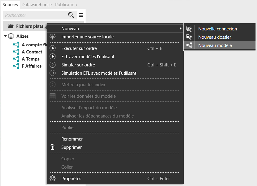 Sélectionnez le dossier « Fichiers plats ». Cliquez droit, puis sélectionnez « Nouveau >> Nouveau modèle ».