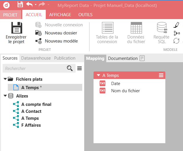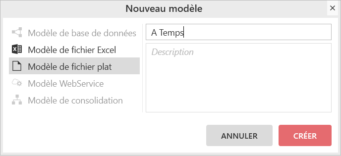 Sélectionnez « Modèle de fichier plat » puis nommez ce nouveau modèle « A Temps ».