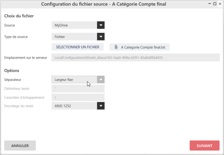 Vous allez créer un modèle issu d'un fichier plat à largeur fixe que vous appelerez A Catégorie Compte final.
