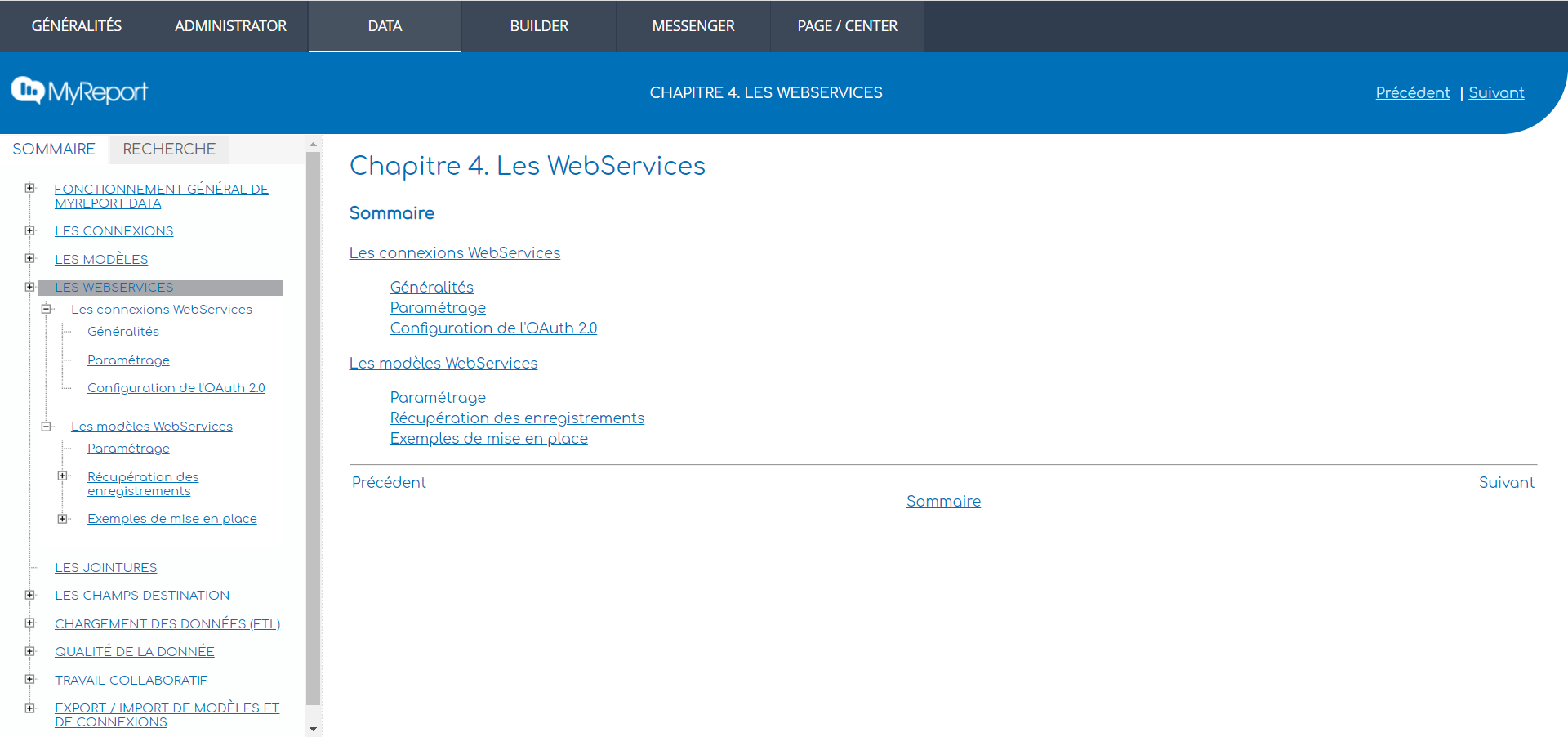 Pour plus d’informations, consultez le Manuel d’exploitation de MyReport Data au chapitre « Les WebServices » : https://portail.myreport.fr/knowledge/article/1393.