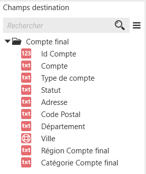 Il ne vous reste plus qu’à glisser-déposer le champ « Catégorie Compte final » dans l’espace des Champs destination.