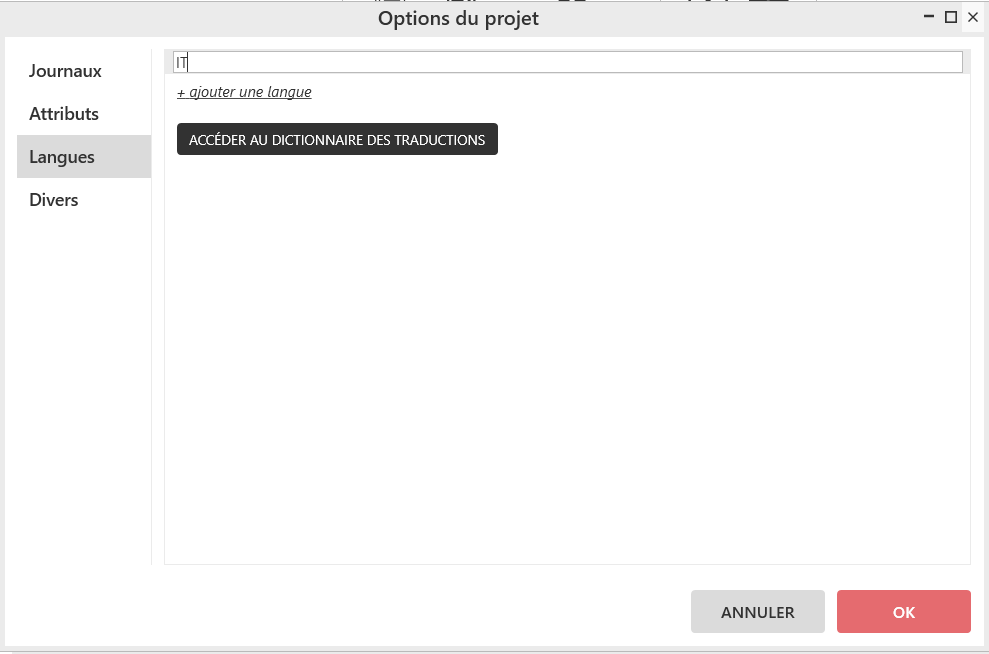 Le lien GERER LES LANGUES permet d’ajouter d’autres langues.