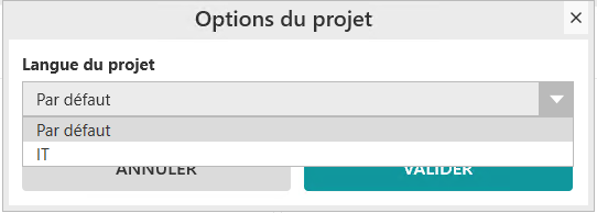 Au lancement de MyReport Builder ou MyReport Page, avant de choisir la source ou le projet, chaque utilisateur peut choisir la langue de traduction des libellés des champs.