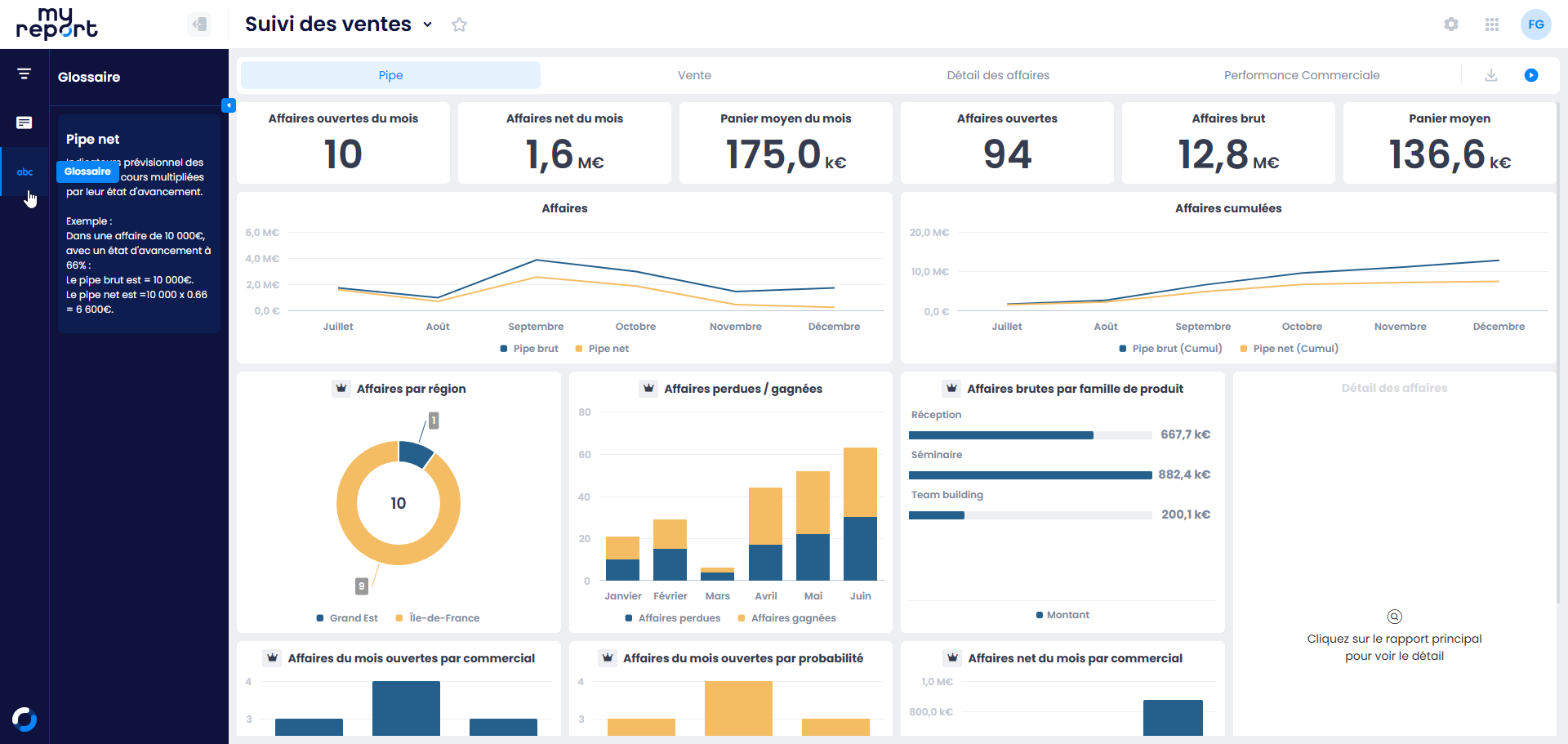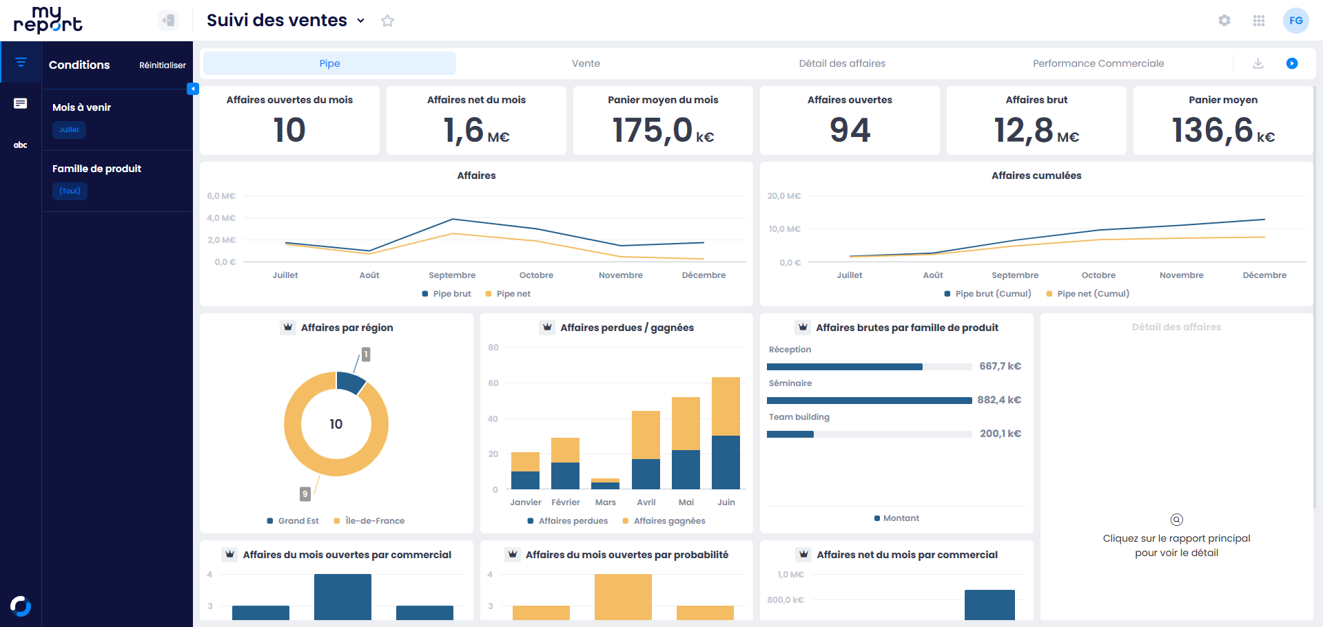 MyReport ouvre le tableau de bord concerné et surtout le paramétrage du rapport concerné.